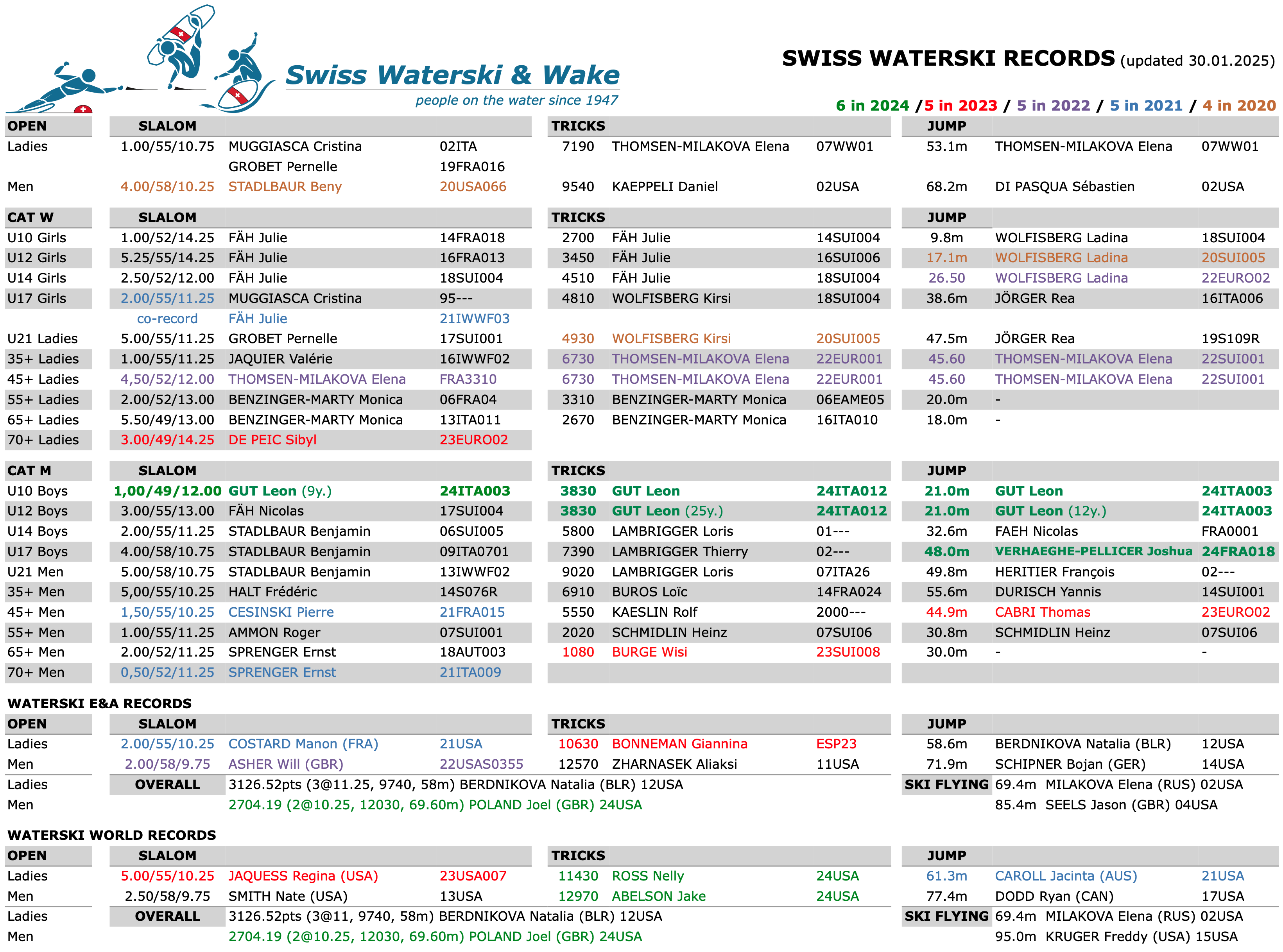 Ci-joint le tableau des records suisses par catégorie depuis 1980