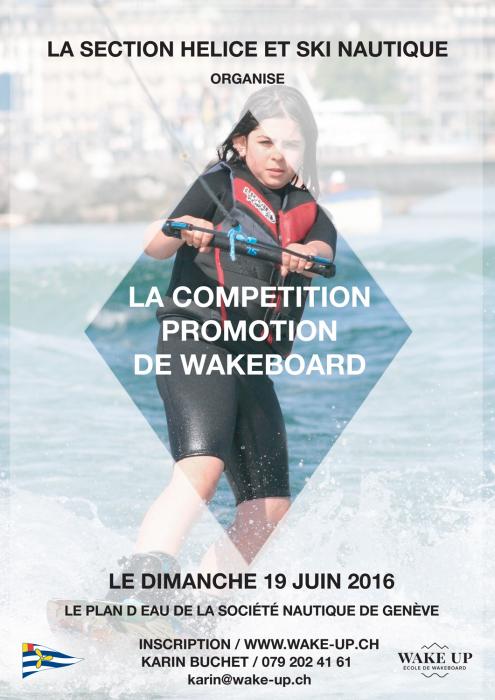 Der PROMO WAKEBOARD-WETTKAMPF organisiert durch die Société Nautique de Genève und dem Wake-Up-Club musste infolge schlechtem Wetter vom 19. Juni auf den Samstag, 3. September 2016 in Genf (Port Noir) verschoben werden.
