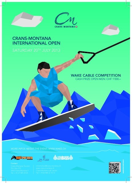 For all questions about the CABLEWAKE CRANS-MONTANA INTERNATIONAL OPEN (registration, cash-prize, categories, participants, location of the event, how to get there, timing, format of the competition, accommodation, etc. etc.) please contact the ORGANIZER: