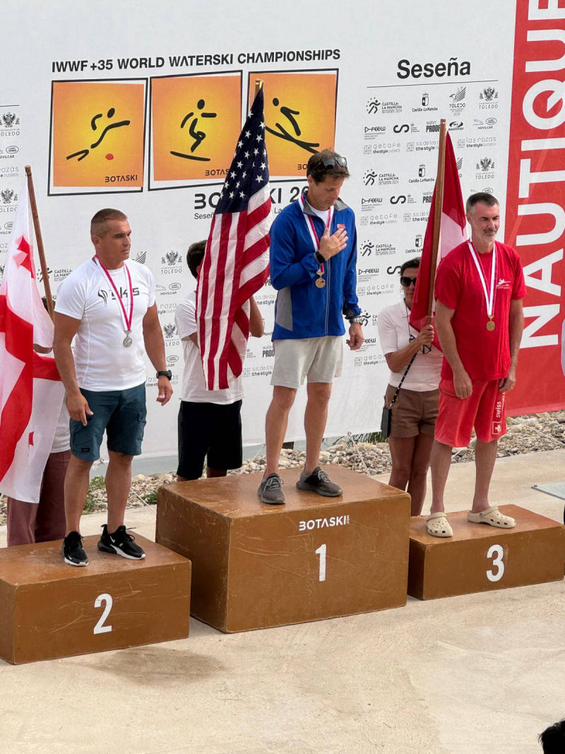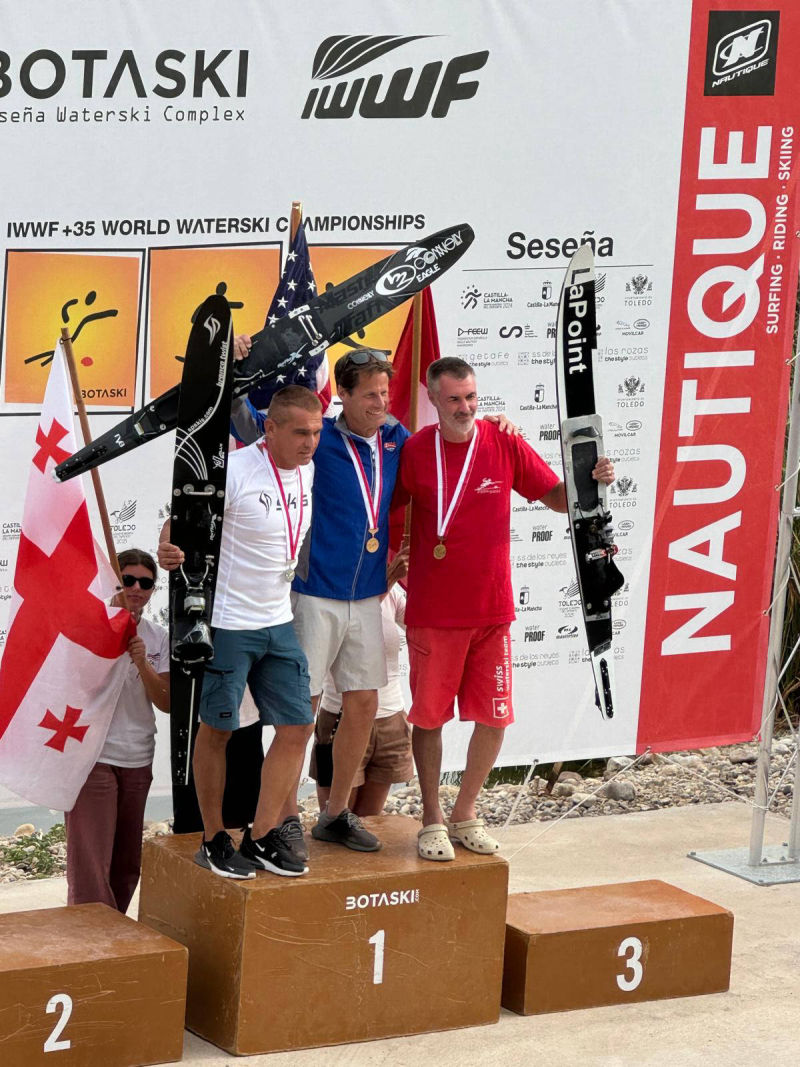 Fantastique journée pour l’équipe suisse de ski nautique seniors qui se déplaçait à Seseña en Castille pour les championnats du monde. Pierre Cesinski AGS 45+ slalom a remporté la médaille de bronze 🥉. 2ème des éliminatoires à égalité avec Genadi Guralia Georgia et Anders Foss Norway, mais loin derrière Seth Sticher USA ( 2/55/10.25), le genevois rêvait de revanche après sa finale manquée aux Euro.