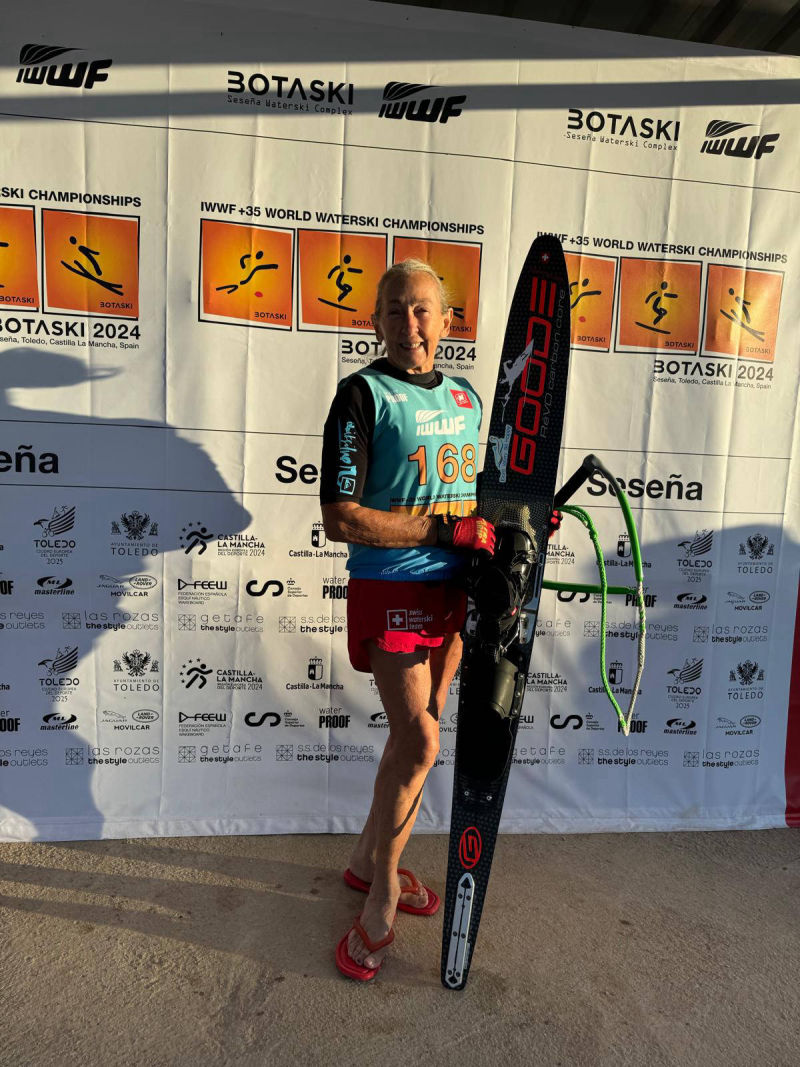 La dernière journée des Championnats du Monde de ski nautique Séniors s’est terminée aujourd’hui par une fantastique médaille de bronze 🥉en slalom 70+ Women, remportée par Sibyl De Peic SCM. La nouvelle sociétaire du Ski Nautique Club de Morges qui s’était qualifiée jeudi passé avec un score en deçà de son niveau habituel, est partie première de la finale, qui l’opposait à des concurrentes plus fortes qu’elle sur le papier. « Je n’avais pas très bien skié aux éliminatoires, j’ai eu de la chance de me qualifier pour la finale, je n’avais rien à perdre. Â»