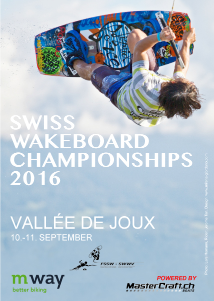 Le championnat suisse de wakeboard 2016 aura lieu au Lac de Joux (VD) le week-end des 10 et 11 septembre. Les riders peuvent s’inscrire dès maintenant sur ce site, dans leur espace personnel. Attention : licence de compétition obligatoire ! Les meilleurs athlètes suisses, dont l’équipe qui revient des  championnats d’Europe, se mesureront dans 8 catégories différentes sur le plan d'eau du Pont. Après les runs de qualification du samedi, les finales, suivies de la remise des médailles, se feront le dimanche. Ce sport nautique, qui se caractérise par l'acrobatie et la vitesse, est extrêmement attrayant pour les spectateurs. Horaires: samedi 8h-19h, dimanche 8h-17h. Ci-joint le bulletin d'information. Pour toute info complémentaire, contacter Erika Roch (, 079 406 90 48).