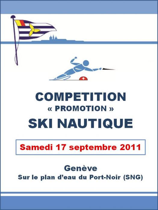 La Société Nautique de Genève, section Hélice et Ski organise sa traditionnelle compétition promo de ski nautique le 17 septembre, sur le plan d'eau du Port Noir. Au programme à partir de 8 h 00 : slalom, figures et des épreuves spéciales pour les aiglons du lac (mini-slalom / slalom libre). Cette compétition est ouverte à tous les clubs suisses. En annexe : les infos détaillées, le programme et le bulletin d'inscription à renvoyer à Claude Perez () avant le 14 septembre.
