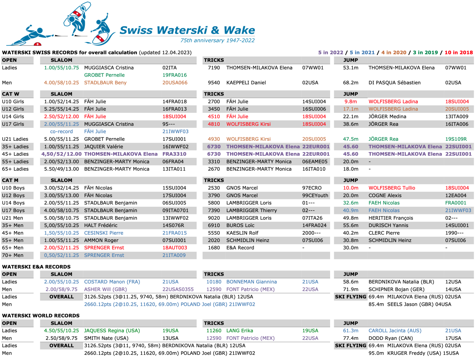 Ci-joint le tableau des records suisses par catégorie depuis 1980